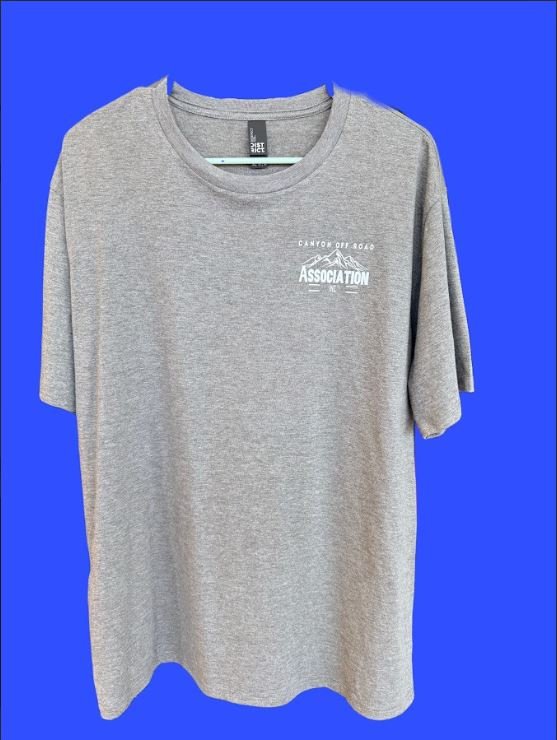 Represent the trails and the cause with the Canyon Off Road Association Inc signature short-sleeve tee – ideal for off-road enthusiasts, trail volunteers, and anyone passionate about keeping Four Corners riding areas open and sustainable. Crafted in soft heather gray fabric, this unisex tee features a powerful, large white back print that commands attention: “CANYON OFF ROAD” arched over a majestic mountain range silhouette, with “ASSOCIATION INC” boldly centered below and clean horizontal lines for a sharp, professional finish.