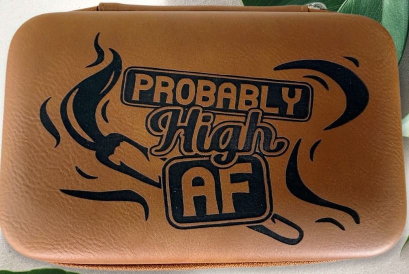 This premium smoke case brings the ultimate chill energy with a hilarious, no-filter vibe—because let’s be real, you’re probably high AF, and this case keeps your session sorted. Handcrafted from high-quality, durable vegan leather (PU leatherette) in a smooth finish, it nails that classic leather look with a soft pebbled texture—tough, water-resistant, and ready for pocket, purse, or backpack life. The compact, rounded rectangular zippered design (approximately 6″ x 4″ x 1.5″) features a reliable metal zipper pull and reinforced edges for everyday durability.