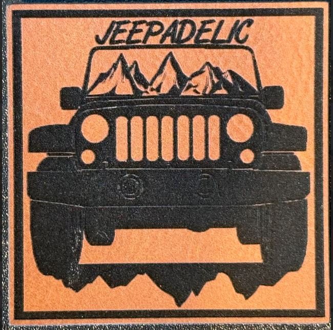 Fuel your adventurous spirit with this bold Jeep silhouette leatherette patch featuring “JEEPADELIC” across the top. Designed for off-road enthusiasts and free spirits alike, this eye-catching patch blends rugged style with a fun, retro-inspired twist.