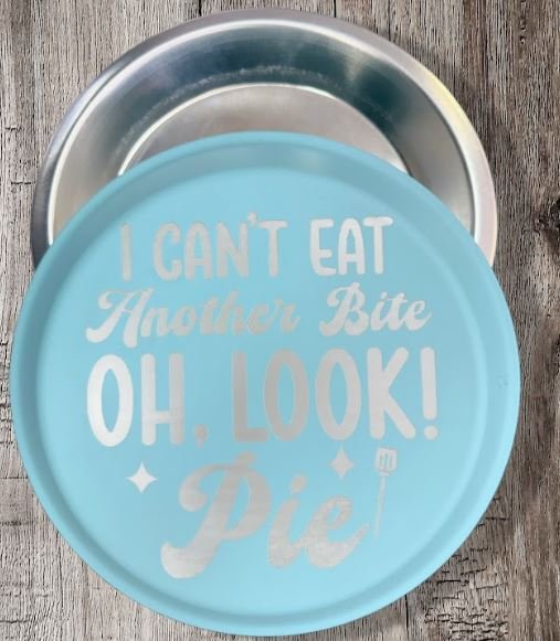 This adorable pie tin lid cover (or full pie tin topper) is the perfect cheeky accessory for your homemade pies—because nothing says “I’m stuffed” quite like a sassy declaration on your dessert! Crafted from high-quality, food-safe stainless steel with a vibrant powder-coated light aqua/blue finish, it features a smooth, glossy surface that’s easy to clean and resistant to chipping or fading. The classic round design (standard 9-inch pie tin compatible) includes a secure crimped edge for a snug fit on most standard aluminum or glass pie pans, helping keep your pies fresh, protected from dust, and looking Instagram-ready.